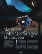Ten magiczny charakter marki w pełni oddaje Stratoscope, nowy zegarek fir- my MeisterSinger. To kolejny model, po Lunascope, z przepiękną tarczą, umoż- liwiającą w imponujący wręcz sposób prezentację faz Księżyca. Faza Księżyca