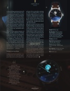 W okrągłym okienku na godzinie 6. mo- żemy odczytać datę w postaci dnia mie- siąca. Ponad nią, jeszcze na niebieskim polu, nadrukowano nazwę i logo firmy, a na czarnym tle, symetrycznie w pozio- mie na godziniach 3. i 9., nadrukowano nazwę modelu i informację o rodzaju na- ciągu sprężyny napędowej mechanizmu. Zegarek wyposażono w sprawdzony i ceniony mechanizm Sellita SW220, ale ze specjalnie opracowanym modułem odpowiadającym za wyjątkowo dokład- ne wskazanie faz Księżyca. n