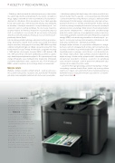 Nowa seria Canon MAXIFY to urządzenia atramentowe, które zostały stworzone z myślą o małych firmach, poszukujących wysokiej jakości rozwiązań do profesjonalnego druku kolorowego, kopiowania, skanowania i faksowania. Model MB5350 drukuje w formacie A4 z szybkością 23 obrazów na minutę (ipm) w czerni i bieli oraz 15 ipm w kolorze. Zastosowany atrament jest odporny
