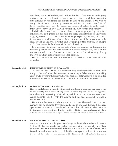 UNIT OF ANALYSIS: INDIVIDUALS, DYADS, GROUPS, ORGANIZATIONS, CULTURES 133