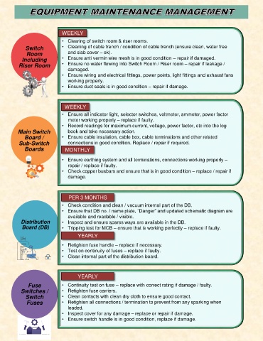 Riser Room • Ensure no water flowing into Switch Room / Riser room – repair if leakage /