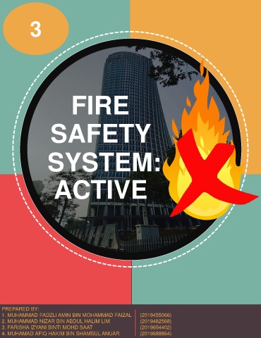 3 FIRE SAFETY SYSTEM: ACTIVE PREPARED BY: 1. MUHAMMAD FADZLI AMIN BIN MOHAMMAD FAIZAL (2019455066) 2. MUHAMMAD NIZAR BIN ABDUL HALIM LIM (2019482568) 3. FARISHA IZYANI BINTI MOHD SAAT (2019654402) 4. MUHAMAD AFIQ HAKIM BIN SHAMSUL ANUAR (2019688864)