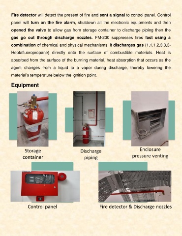 gas go out through discharge nozzles. FM-200 suppresses fires fast using a