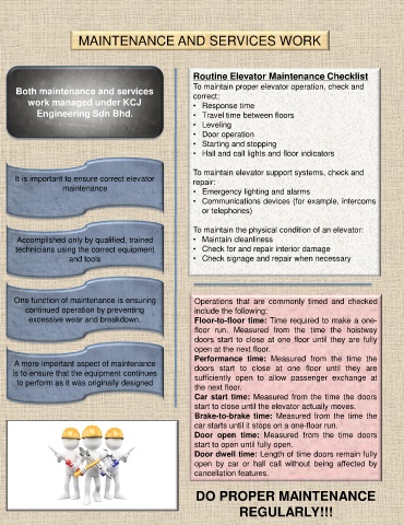 One function of maintenance is ensuring Operations that are commonly timed and checked