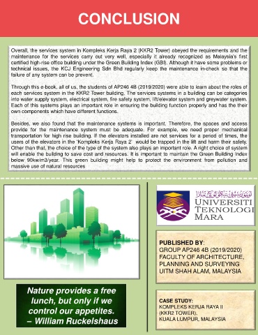 Overall, the services system in Kompleks Kerja Raya 2 (KKR2 Tower) obeyed the requirements and the
