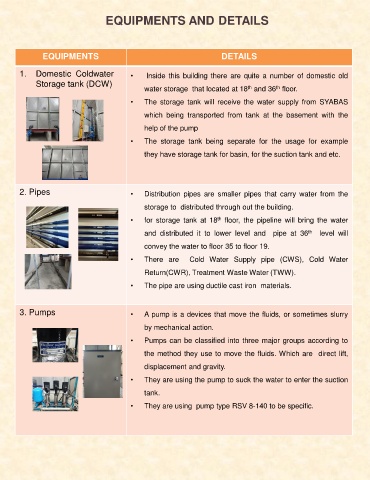 • There are Cold Water Supply pipe (CWS), Cold Water