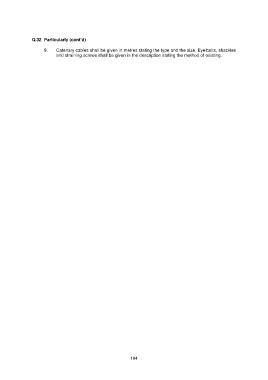 Q.32 Particularly (cont’d) 9. Catenary cables shall be given in metres stating the type and the size. Eye-bolts, shackles and straining screws shall be given in the description stating the method of existing. 104