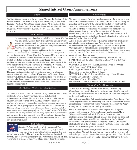 to donate items, contact Denise Caputo at 916-782-1663 or email DECEMBER - THERE IS NO VET’S MEETING IN DECEMBER