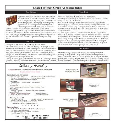 weeks. Travel Group on August 8th. Thanks to Janice Ingersoll and the Bunco
