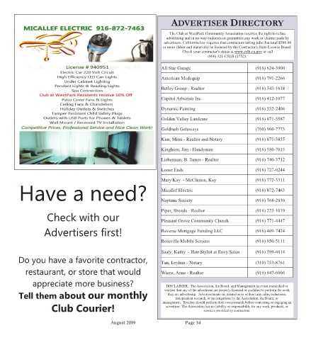 Club Courier! advertiser. The Association has no liability or responsibility for any work, products, or
