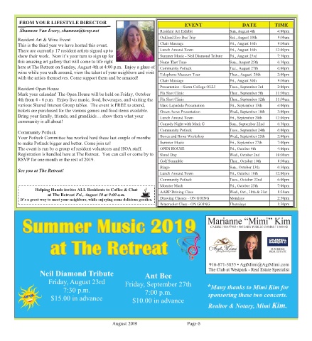 here at The Retreat on Sunday, August 4th at 4:00 p.m. Enjoy a glass of Community Potluck Tue., August 27th 6:00pm