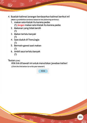 4. Buatlah kalimat larangan berdasarkan kalimat berikut ini!