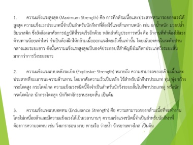 สูงสุด ความแข็งแรงประเภทนี้จ าเป็นส าหรับนักกีฬาที่ต้องใช้แรงต้านทานหนัก เช่น ยกน้ าหนัก มวยปล้ า