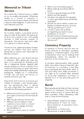 • Who should officiate the service? • Ground Burial: burial of the casket