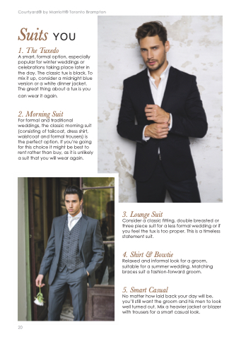Consider a classic fitting, double breasted or three piece suit for a less formal wedding or if you feel the tux is too proper. This is a timeless statement suit.