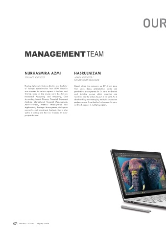Having diploma in Business Studies and Bachelor Hasrul joined the company on 2015 and since Adilan graduated from University of Technology Masduqi also known as Duki gradutes from