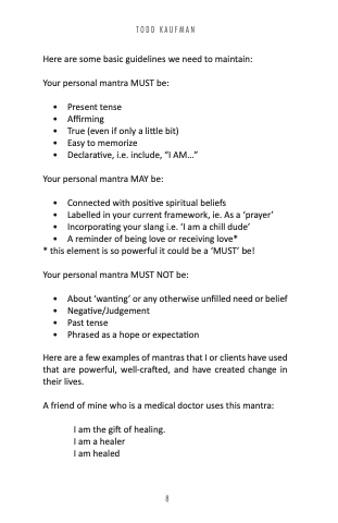 • Connected with positive spiritual beliefs • Labelled in your current framework, ie. As a ‘prayer’ • Incorporating your slang i.e. ‘I am a chill dude’ • A reminder of being love or receiving love*