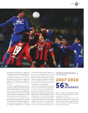 Arriba: Marco Estrada celebra el gol que le dio la clasificación a la “U” a la fase de grupos de la Libertadores de los principales protagonistas. Luego de ter- el director técnico. Su repentina salida provo- campaña. Las fuerzas no le alcanzarían en el resultados que le daban la tranquilidad sufi-