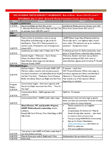 DELTA SIGMA THETA SORORITY WORKSHOP - Run of Show - Room 338-339, Level 3