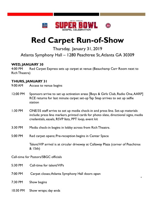 Red Carpet Run-of-Show