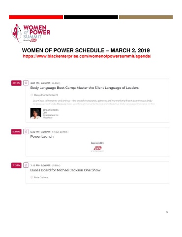 WOMEN OF POWER SCHEDULE – MARCH 2, 2019 https://www.blackenterprise.com/womenofpowersummit/agenda/ 20