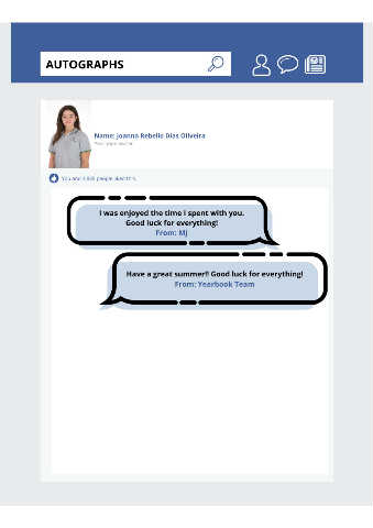 AUTOGRAPHS Name: Joanna Rebello Dias Oliveira Yearbook owner You and 3,835 people liked this. I was enjoyed the time I spent with you. Good luck for everything! From: MJ Have a great summer!! Good luck for everything! From: Yearbook Team