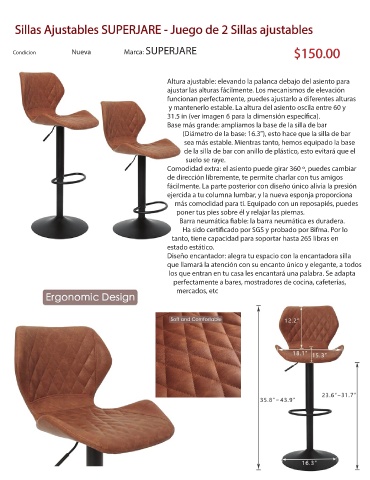 (Diámetro de la base: 16.3"), esto hace que la silla de bar