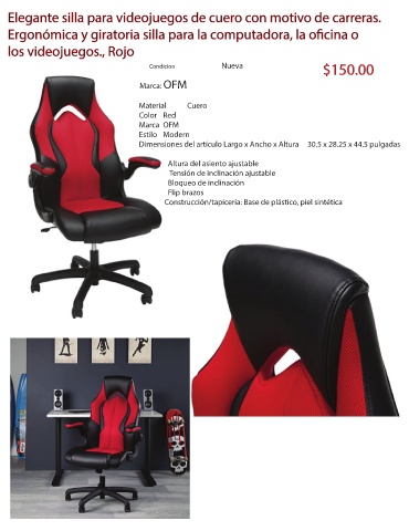 Elegante silla para videojuegos de cuero con motivo de carreras.