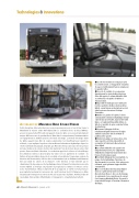 Petite déception, Mercedes-Benz ne nous proposera pas pour ce tour d'une heure à Mannheim la version Citaro ngt Hybrid. On se contentera donc du diesel OM936 associé ici à une boîte zF ecolife six rapports. Dans les faits, on ne ressent absolument aucune différence avec le pendant diesel. Rien dans le comportement, l'instrumentation ou l'équipement ne trahit la présence de l'aide électrique. le moteur électrique étant de faible capacité (220 nm de couple seulement), il est insuf sant pour ralentir le véhicule, ce qui explique la présence du traditionnel ralentisseur hydraulique lequel se révèle extrêmement plaisant, d'autant que Mercedes-Benz a la bonne idée de prévoir un levier dédié sur la colonne de direction (option). Pour un moteur diesel, celui-ci fait preuve d'une excellente éducation. le conducteur apprécie le silence et le bon ltrage des vibrations moteur. l'atout majeur du Citaro est son agrément de conduite : la nition et la présentation du poste de conduite est excellente, l'ergonomie soignée, la direction très bien assistée, à la fois douce et informative tout en éliminant extrêmement bien au volant les cahots de la chaussée. Cette direction se fait entendre par le chuintement de la pompe éectro-hydraulique située à l'avant, forcément associée à la version Hybrid. le freinage est puissant et progressif, les remises en vitesse sur les voies d'accélérations ef caces (la boîte zF à six rapports se révèle ici fort précieuse pour exploiter au mieux les ressources du « petit » moteur de 7,7 l). nuançons ce bilan élogieux par le fait que nous étions à vide sur un parcours de plaine. au nal, l'objectif revendiqué d'un système d'hybridation « transparent » est parfaitement atteint.