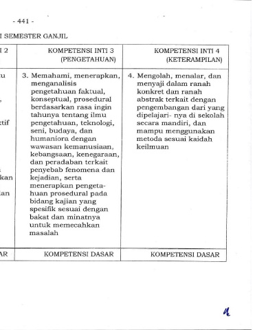KOMPETENSI INTI 1 KOMPETENSI INTI 2 KOMPETENSI INTI 3 KOMPETENSI INTI 4