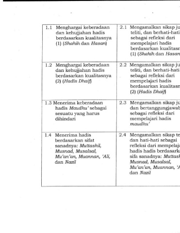 1.4 Menerima hadis 2.4 Mengamalkan sikap teliti 3.4 Menganalisis keberadaan 4.4