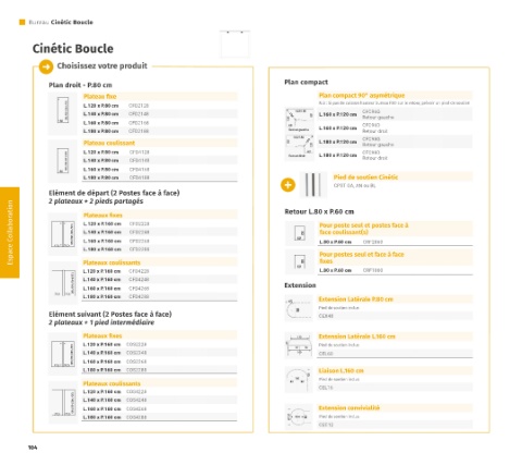 Espace Collaboration 77,5 77,5 120/140/160/180 Plateaux fixes CFD2228 60 80 Pour poste seul et postes face à