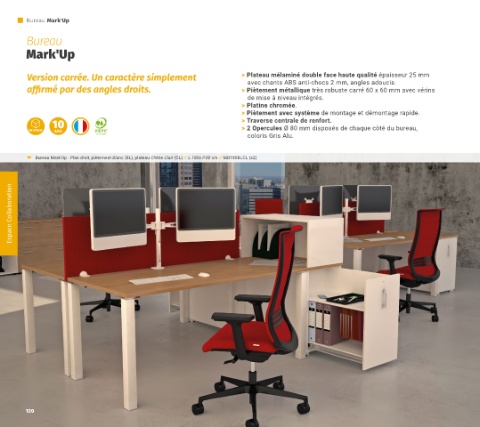 affirmé par des angles droits. > Piètement métallique très robuste carré 60 x 60 mm avec vérins