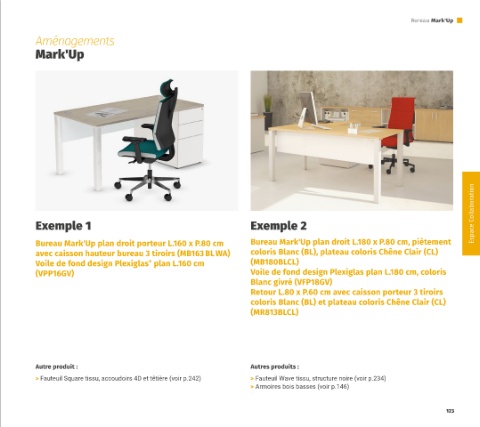Bureau Mark'Up plan droit porteur L.160 x P.80 cm Bureau Mark'Up plan droit L.180 x P.80 cm, piètement