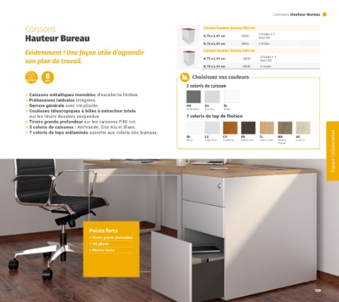 sur les tiroirs dossiers suspendus.                                    7 coloris de top de finition