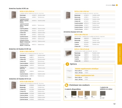 2 portes pleines  AHPM10  Tablette métal                             2 portes basses  APBB10  Tablette bois