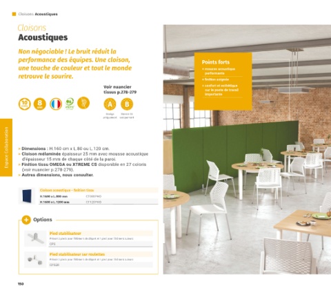 Espace Collaboration > Dimensions : H.160 cm x L.80 ou L.120 cm.