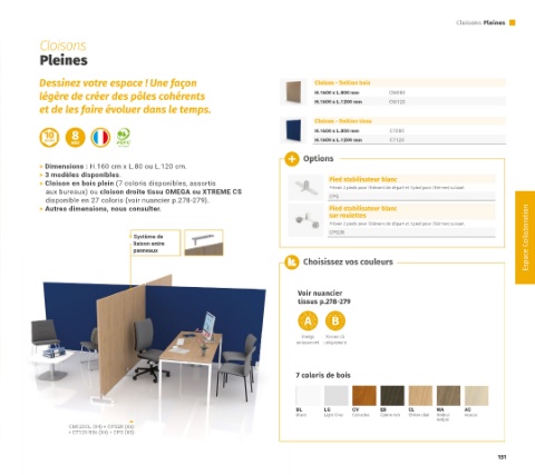 > Cloison en bois plein (7 coloris disponibles, assortis Pied stabilisateur blanc