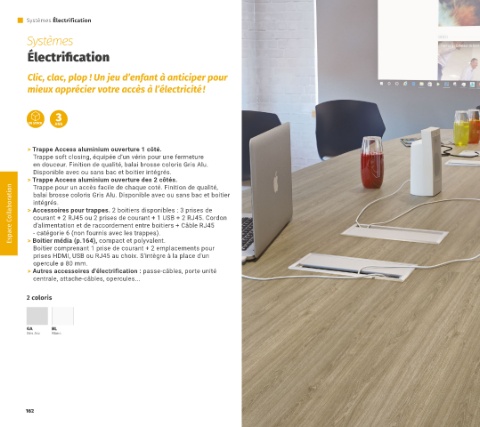 Espace Collaboration > Accessoires pour trappes. 2 boitiers disponibles : 3 prises de