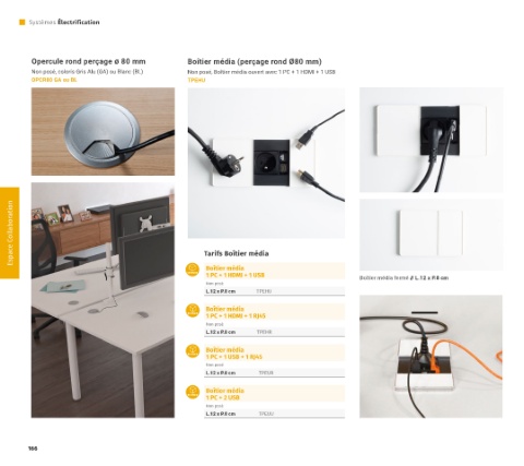 Non posé, coloris Gris Alu (GA) ou Blanc (BL) Non posé, Boîtier média ouvert avec 1 PC + 1 HDMI + 1 USB