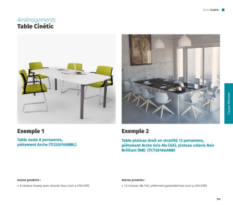 > 4 chaises Swany avec dossier tissu (voir p.256-259) > 12 chaises My Frill, piètement pyramidal bois (voir p.256-259)