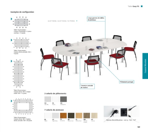 droits arrondis 160 + 20 pieds Blanc Light Grey Calvados Ébène Ash Chêne Clair Walnut Acacia Option électrification - voir p. 162 - 167