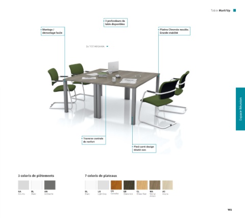 3 coloris de piètements 7 coloris de plateaux