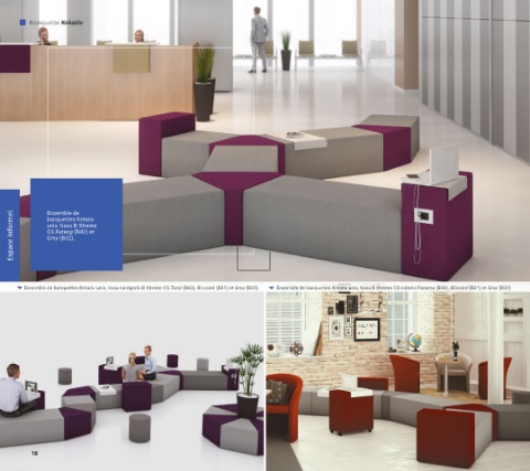 Ensemble de banquettes Kréativ unis, tissu catégorie B Xtreme CS Tarot (B43), Blizzard (B31) et Grey (B32). Ensemble de banquettes Kréativ unis, tissu B Xtreme CS coloris Panama (B38), Blizzard (B31) et Grey (B32)