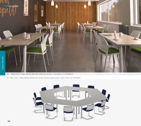 Tables Confort : 6 tables trapèzes, piètement Gris Alu (GA) et plateau Light Grey (LG) // L.140 x P.70 cm // 6x TFZ147GALG