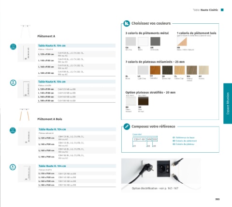 80 CBH148 BL, LG, CV, EB, CL, 02 Coloris de piètement