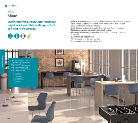 et à l’esprit de partage. > Voile de fond mélaminé structurel assorti au coloris de la table.
