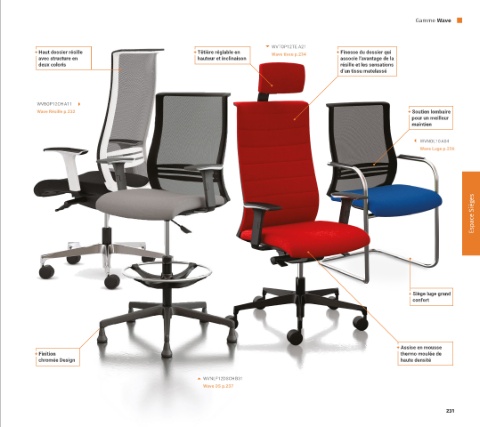 + Haut dossier résille + Têtière réglable en Wave tissu p.234 + Finesse du dossier qui