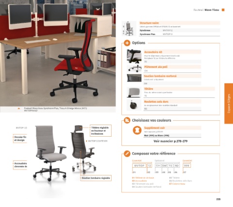 Fauteuil Wave tissu Synchrone Plus, Tissu A Oméga Monza (A21) RD