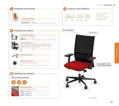 51 - 69 46 Sans accoudoirs - Piètement noir 01 02 03 04 05 05 Coloris tissu